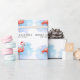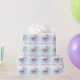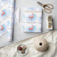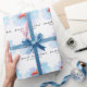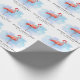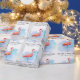 Una salpicadura moderna de acuarela en azul y morado con flamenco rosa que lleva sombrero de Santa en papel de regalo. Hazlo personalizado agregando el nombre de tu familia.