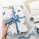 Nave espacial con estrellas y papel de envolvimiento lunar. ¡Ideal para cumpleaños o duchas para bebés!