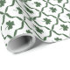 Celebrate the luck of the Irish with this sophisticated St. Patrick's Day wrapping paper. The design features classic deep green shamrocks set within an elegant geometric lattice pattern, evoking the charm of vintage tile or preppy wallpaper. It offers a refined, 'Grandmillennial' take on traditional holiday decor—perfect for wrapping treats for a classroom party, a spring birthday, or a festive hostess gift.