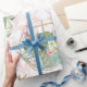 Papel de envoltura de terrario de suculentas plantas color agua de moda rosa, menta y falso purpurina de oro.