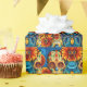 Disfrute del encanto cautivador de una llamativa y vibrante Calavera Azúcar adornada con exquisitas flores azules, amarillas y naranjas.