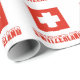 La bandera suiza es una plaza roja con una cruz blanca en el centro. Se muestra en este diseño con la palabra SUECIA abajo, en letras nevadas azules. Compartir su patrimonio con este papel de regalo.