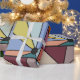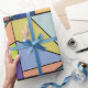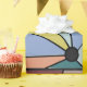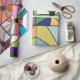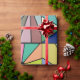 Este papel envolvente tiene un diseño abstracto hecho de nueve cuadrados con un círculo y "rayos" que salen del círculo en muchos colores diferentes.