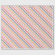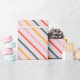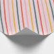 The paper features a large-scale, mid-century modern geometric pattern consisting of diagonal stripes. The design uses a coordinated mix of muted coral, sunny mustard yellow, and sage green set against a soft lavender or pale pink background. Perfect for birthdays, holidays, or everyday gifting, this design adds a joyful pop of color to any present—no extra embellishments needed.