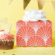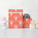 The paper features a large-scale, mid-century modern geometric pattern consisting of a fan design. The design uses a coordinated mix of muted coral set against a pale pink background. Perfect for birthdays, holidays, or everyday gifting, this design adds a joyful pop of color to any present—no extra embellishments needed.