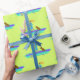 Papel de envolver de regalo con chica en un tablero con el diseño de su perro. El patrón se imprime sobre el color de la cartón tropical. Encajar regalos para hija adolescente o amigo. Este divertido y deportivo llega en una variedad de longitudes.