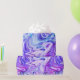 Giro de tinta que deslumbra en violetas audaces y azul sobre blanco.