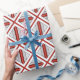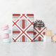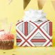 Este patrón geométrico audaz presenta blanco, gris y rojo.