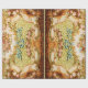 Hermoso estilo barroco, tapiz con flores, rosas, cinta y pergamino. En ricos colores rosa, verde, ámbar, dorado y azul.