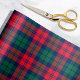 Este clásico diseño de papel de envoltura vacacional presenta un fondo estampado escocés de lona escocesa, azul marino, verde y rojo festivo.