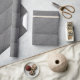 textura de tela gris con dibujos abstractos y coser sus costuras Siente la luz y la sofisticación en la textura de tela gris. Sumérjase en un mundo de elegancia y maravilla táctil subestimadas. Elevar su viaje visual con la gracia de la textura de tela gris, grabada con motivos abstractos y costuras delicadas. costura, tela, fondo, patrón, abstracto, textura, luz, blanco, línea, negro, textil, algodón, tela, hilo, costura, material, relieve, rayado, gris, cierre