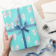 Papel De Regalo Tema Azul Acuático Glam con Lazo Blanco