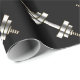 El papel de regalo de los hombres con clase incluyendo los barbells de mirada metálicos de plata por todo el papel de embalaje en un diseño masculino que trabaja bien para un instructor de la aptitud, una salud o un tema de la aptitud como papel de regalo para los hombres.
