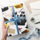 Motivos piratas del cofre del tesoro, calavera y cruces, mapa del tesoro, barco pirata. El color de fondo puede cambiarse a su elección.