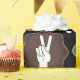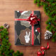Un divertido y festivo regalo de Navidad envuelto con "Paz" en lenguaje de señas y el mensaje, "Ten Navidades Groovy" y "Paz, Alegría y Amor"