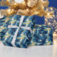 Nuestro elegante resumen de regalo azul combina un sofisticado patrón abstracto con texto de personalizable, enmarcado en una fría paleta de azul y gris con toques de plata. Este lujoso papel de envoltura es perfecto para aquellos que aprecian el arte de regalar, permitiendo la personalización con nombres o mensajes especiales. Ideal para cualquier ocasión, este envoltorio ofrece un toque moderno único, asegurando que sus regalos destaquen con estilo y significado personal.