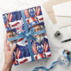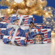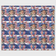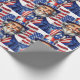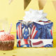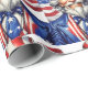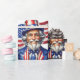 Tío Sam sonriente icono americano USA con traje americano y bandera americana ondeando al fondo