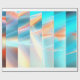 Una representación colorida y muy abstracta de una puesta de sol. Los colores van desde el azul del cielo, hasta el amarillo del Sol, hasta el naranja y el rojo de las nubes en el horizonte.