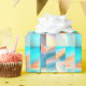 Una representación colorida y muy abstracta de una puesta de sol. Los colores van desde el azul del cielo, hasta el amarillo del Sol, hasta el naranja y el rojo de las nubes en el horizonte.