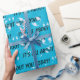 Burbujas transparentes flotando sobre fondo de degradado azul neón y turquesa con el texto "Todo se trata de ti hoy". Se puede cambiar el texto.