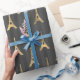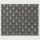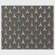 Papel de regalo con patrón de torre Eiffel gris y dorado.