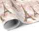Este bonito diseño de papel envuelto de la Torre Eiffel presenta un gráfico marrón de la Torre Eiffel sobre un fondo de mármol blanco y oro rosa.