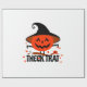 Celebra Halloween de manera espeluznante con esta obra de arte de la Trata de Calabaza con una calabaza super linda con un hacha de daga y un fantasma. La obra de arte lleva un gorra, añadiendo un aspecto de misterio a la figura fantasmal.