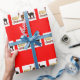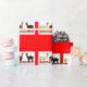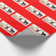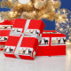 Tres alpacas con sombreros de Santa decoran este papel de envoltura de Navidades que dice "Saludos de Navidad"