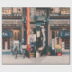 PAPEL DE REGALO TRES BICICLETAS ESTACIONADAS FRENTE AL EDIFICIO