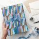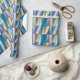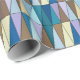 Papel envuelto en una cuadrícula geométrica moderna de mediados del siglo de los triángulos en los colores de vidrio marino azul ceruleño, turquesa, agua, café marrón, beige y violeta suave