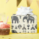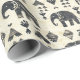 Rustic tribal elephant pattern wrapping paper featuring bold black elephant silhouettes, geometric motifs, and folk-inspired details on a neutral textured background. A stylish and timeless design ideal for safari lovers, boho décor fans, nursery themes, and anyone who loves ethnic-inspired art.