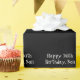 Guay, letras blancas, "trigésimo cumpleaños feliz, hijo" en el papel de regalo negro.