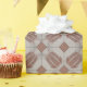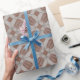 Papel de envoltura geológica, diseño fósil trilobita simétrico en tonos tierra rojiza.