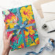 A seamless pattern featuring vibrant watercolor tropical flowers and leaves, perfect for wrapping gifts for any occasion with a colorful touch.