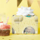Personalice su foto, impresa en el círculo, utilizando las plantillas proporcionadas; es fácil cambiar la imagen de sus fotografías digitales. El diseño gráfico es un sencillo patrón de rayas con rayas amarillas y blancas, globos y un marco de imagen redondeado para la imagen. Utilice este divertido diseño gráfico para envolver regalos, proyectos de artesanía y decoraciones de fiestas de cumpleaños. Este diseño geométrico es adecuado para todos, para todas las ocasiones y edades. Estas rayas son divertidas al envolver regalos o favores de fiesta para cumpleaños, aniversarios, graduaciones, duchas y más.