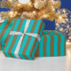 Papel De Regalo Turquesa Azul y Franja Dorada