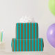 Papel de regalo con franjas azules turquesas y doradas con bonitas franjas azules turquesas y doradas.