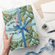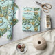 Este divertido "Go Bananas!", papel de envoltura turquesa, incluye bananas amarillas hechas a mano y hojas de plátano tropical verde contra un fondo turquesa con sutiles gotas de lluvia que se detallan en un turquesa más ligero. Personaliza con un título (Feliz Cumpleaños, Feliz Aniversario, Felicitaciones, etc.) y tu nombre.