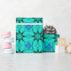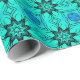 This striking wrapping paper features a bold turquoise and blue kaleidoscope fractal pattern arranged in a seamless geometric repeat. Intricate symmetrical shapes and layered textures create a dramatic design that blends abstract symmetry, psychedelic color, and modern digital art into a vibrant decorative pattern.