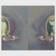 Un majestuoso pavo real en oro y verde. El pavo real se cautiva con sus magníficas plumas detalladas, adornadas con floridos decorativos y adornos complejos. Su majestuoso aplomo queda resaltado por el diseño artístico de las plumas, que brillan en una armoniosa interacción de acentos dorados y verde rico. El pavo real está rodeado por un marco ovalado que recuerda a una cuerda retorcida. Este marco está muy bien diseñado y decorado con hojas pequeñas y delicadas, lo que le confiere un carácter natural y elegante.