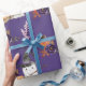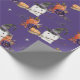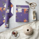 Papel de envolver de regalo lindo con mago fantasma y morado oscuro y naranja floral. ¡Artículos coincidentes disponibles en la tienda! (c) El estudio Happy Cat Studio.