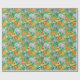 Unrolled and flat views of gift wrap featuring a colorful pattern of smiling lions, giraffes, zebras, and elephants on a green background. Playful and cheerful.