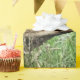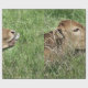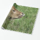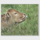Una hermosa y linda cría tendida en el pasto largo con la lengua fuera.