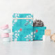 Un papel de envolvimiento con temática playera para sus vacaciones en el paraíso. Un árbol de Navidad hecho de preciosas conchas decorativas coronadas por un pez estrella roja, un bastón de caramelo en una botella de corcho, complementará tu decoración costera.
