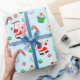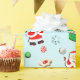 Fun Navidades voleibol envuelve regalo de vacaciones con la señora Claus rodeada de caramelos, galletas y copos de nieve.