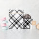 El diseño de este papel de envolvimiento vacacional presenta un fondo clásico y moderno con estampado escocés, blanco y negro. El fondo blanco se puede personalizar a cualquier otro color que prefiera.