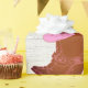 Un diseño rústico con temática de vaquero o vaquera. Papel de envolver regalo con un par de botas de vaquero y un gorra de vaquero.