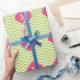 Papel De Regalo Verde del kiwi y monograma del modelo de zigzags