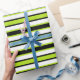 Arte digital abstracto de rayas, uno domina el negro y el verde limón delineado con el color opuesto.
