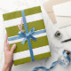 Papel De Regalo Verde Oliva y Blanco Rayado Horizontal Clásico